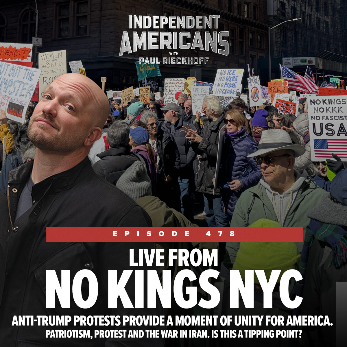 Live from the massive “No Kings” protests in New York City, Iraq War veteran and Independent Americans host Paul Rieckhoff takes you into the streets as Americans of all ages and backgrounds say “hell no” to forever wars and unchecked presidential power. From the unpopular war in Iran to Trump’s threats against Ecuador and Cuba, Paul explains why this feels like a tipping point—and why more veterans, independents, conservatives, and liberals are uniting than we’ve seen in years. He also breaks down bombshell reporting about Defense Secretary Pete Hegseth allegedly blocking Black and female officers from promotion, and what it reveals about politics infecting the Pentagon. This is what modern patriotism looks like: people standing up, speaking out, and paying the price of freedom with their vigilance. Watch, listen, and share if you’re tired of being ignored by both parties and ready for real accountability. -WATCH full video of this episode here. -Join IVA and stand up to Trump’s Forever Wars. -Learn more about Paul’s work to elect a new generation of independent leaders with Independent Veterans of America. -Learn more about American Veterans for Ukraine here. -Remember Independent is an Attitude. -Learn more about The Headstrong Project for Veterans, Tragedy Assistance Program for Survivors (TAPS), and Department of Veterans Affairs resources in your area. Seeking support is not a sign of weakness. It’s a show of strength. If you or a loved one are in immediate crisis, dial 988 and press 1, or text 838255. Connect with Independent Americans: Subscribe on YouTube, Spotify, Apple Podcasts, and all podcast platforms Read more at Substack Support ad-free episodes at Patreon Connect: Instagram • X/Twitter • BlueSky • Facebook Follow on social: @PaulRieckhoff on X, Instagram, Threads, and Bluesky –Join the movement. Hook into our exclusive Patreon community of Independent Americans. Get extra content, connect with guests, meet other Independent Americans, attend events, get merch discounts, and support this show that speaks truth to power. –And get cool IA and Righteous hats, t-shirts and other merch now in time for the new year. Independent Americans is powered by veteran-owned and led Righteous Media. And now part of the BLEAV network!